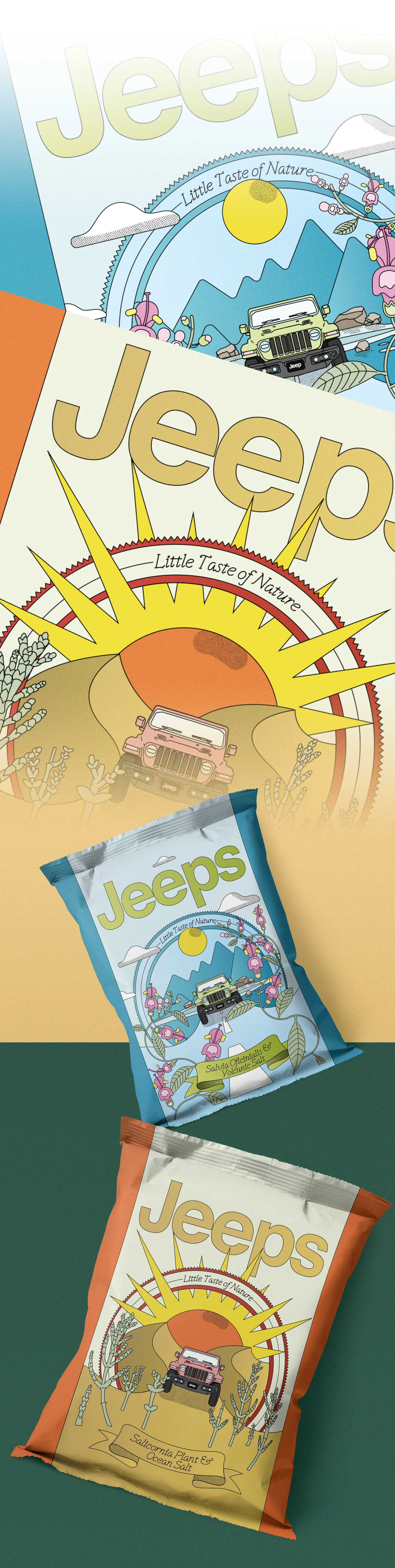 In 2020 I designed and illustrated for Jeep brand for their invitation for their “Jeep 4x4 Days” event. Invitations were made out of chips with the materials that could be only found in wild nature. We broke the context of chips and made them “Jeeps”.