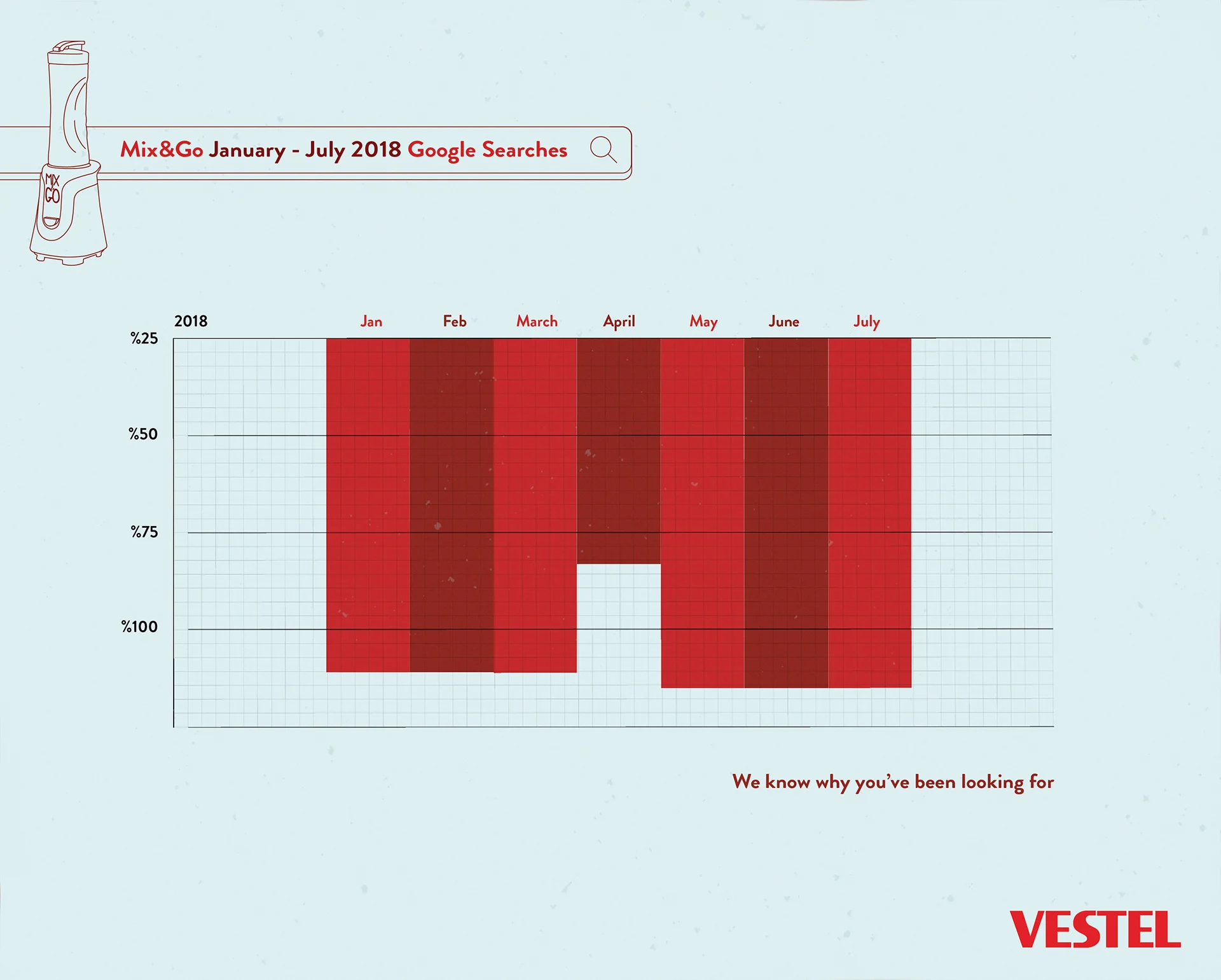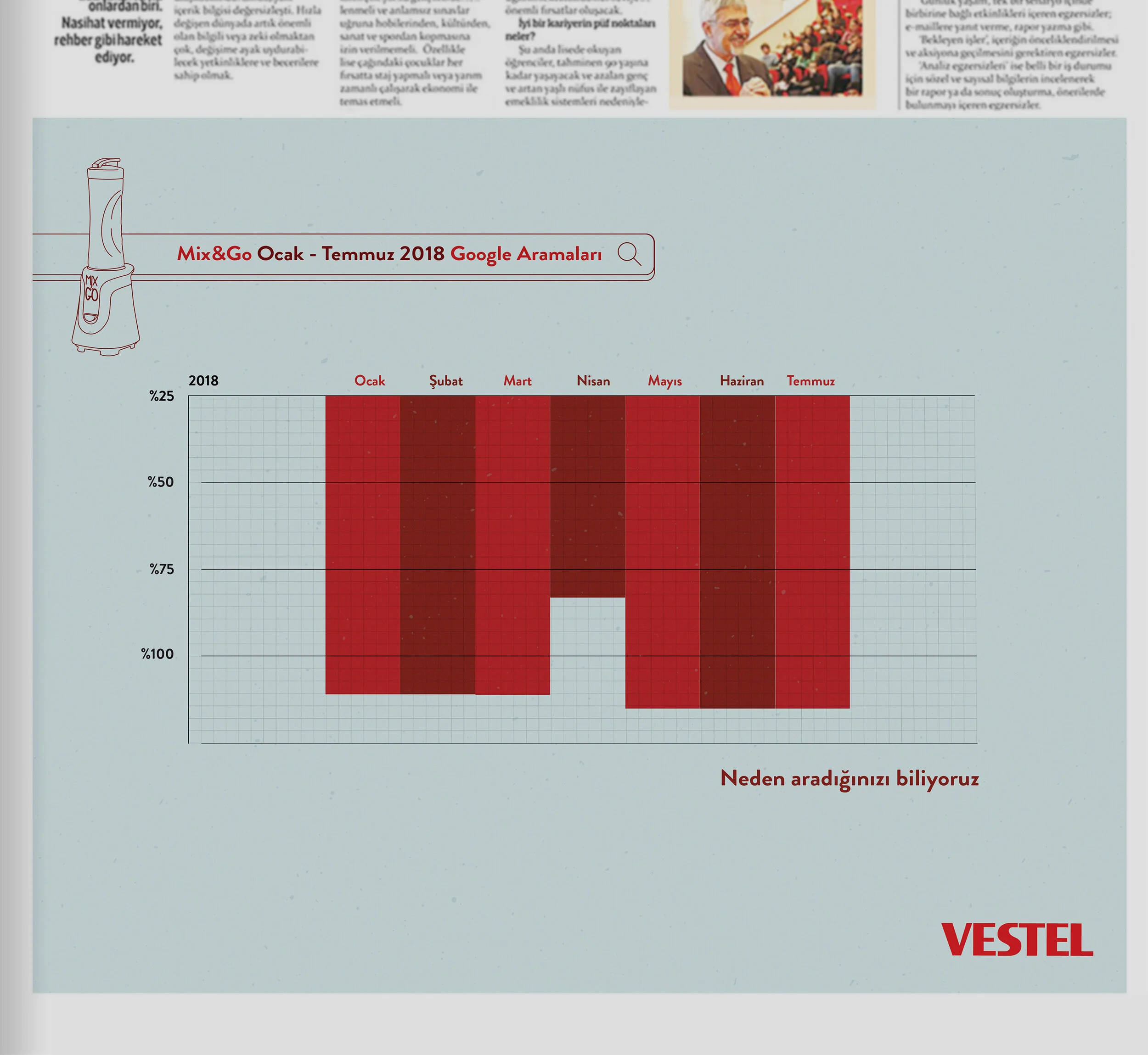 Mix&Go is the smoothie blender of local home electronics manufacturer Vestel. Every summer Google searches of Mix&Go increase drastically. During the summer we launched a print campaign from Google searches of people with the help of Google Trends.